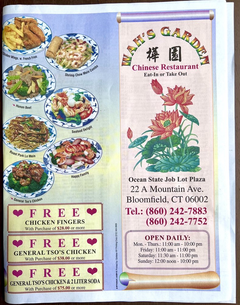 Wah’s Garden, a Chinese restaurant located in Bloomfield, CT, offers a diverse menu with options for everyone. Known for their stellar service and authentic Asian cuisine, Wah’s Garden has become a favorite spot for many customers. From savory chicken dishes to delicious pork fried rice and tasty crab Rangoons, the menu showcases a variety of flavors that are sure to satisfy any craving. The restaurant also offers delivery, takeout, and catering services, making it convenient for customers to enjoy their favorite dishes at home. With positive reviews highlighting the consistency of the food and excellent service, Wah’s Garden is a must-try for those looking for a satisfying Chinese dining experience.